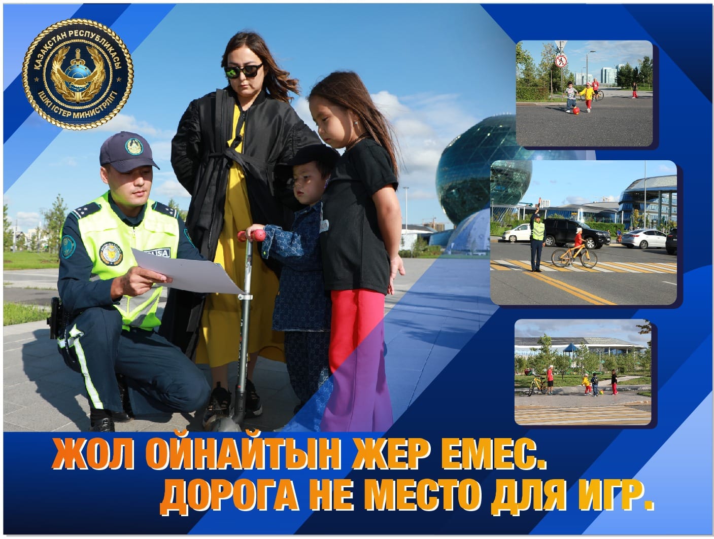 Жол – ойнайтын жер емес. Абай болыңыздар! Өмірлеріңіз бен денсаулықтарыңызды сақтап, тек қауіпсіз жерлерде ойнаңыздар.